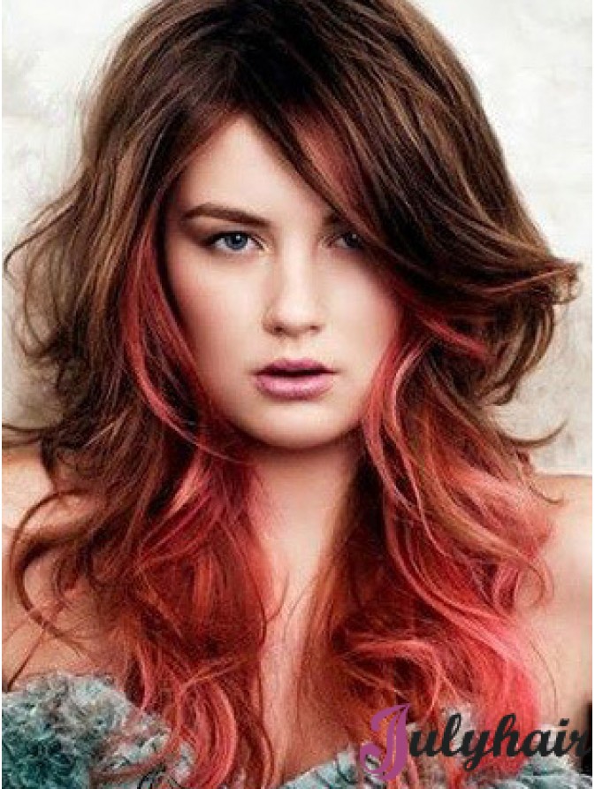 Great Ombre/2 Tone Long Wavy With Bangs 22 inch Human Lace Wigs
