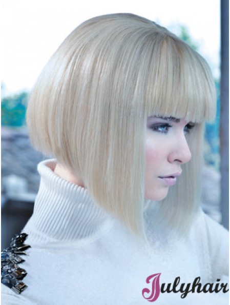 Lace Front Bobs Chin Length Straight 12 inch Platinum Blonde No-Fuss Fashion Wigs