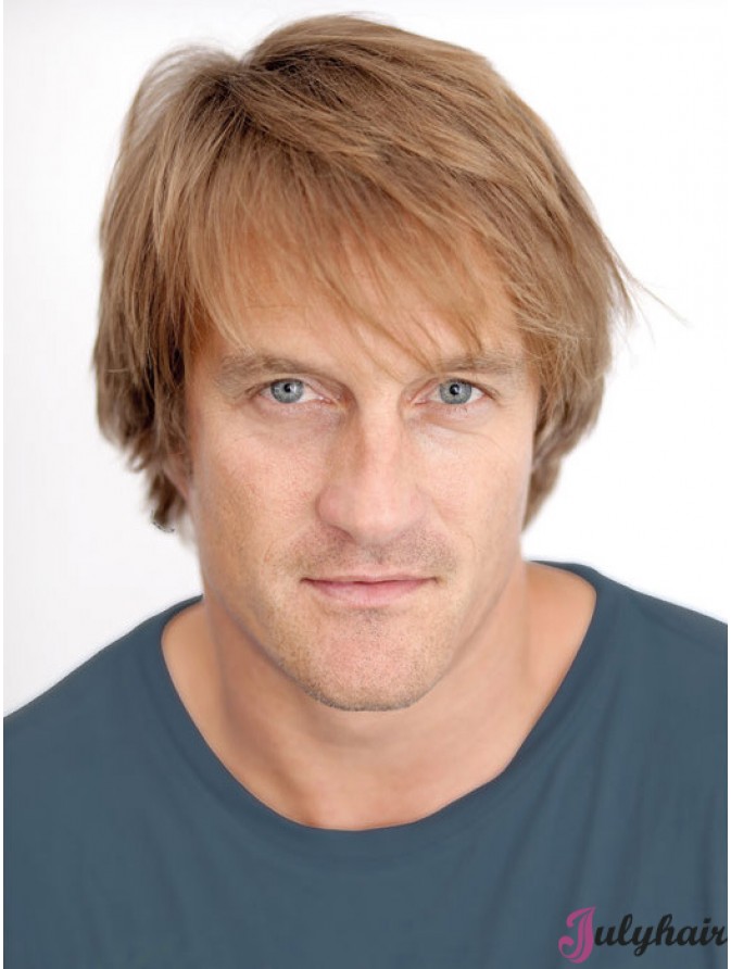 8 inch 100% Hand Tied Remy Human With Bangs Blonde Wig Mens