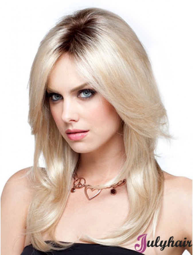 Straight With Bangs Long Blonde Modern Lace Wigs