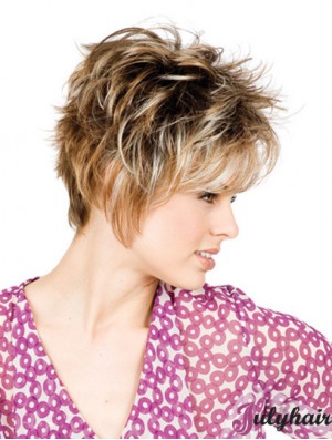 Brown 12 inch With Bangs Chin Length Affordable Monofilament Wigs